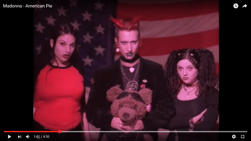 In Madonna’s version, “…the church bells all were broken, the three men I admire most, Father, Son and Holy Ghost, took the last train for the coast the day the music died” lands like an accomplished goal—the end of Christianity’s influence in America, celebrated on stage.